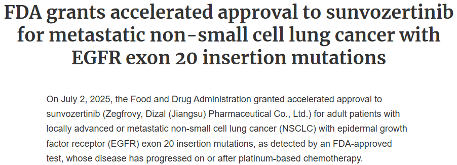[2]https://www.fda.gov/drugs/resources-information-approved-drugs/fda-grants-accelerated-approval-sunvozertinib-metastatic-non-small-cell-lung-cancer-egfr-exon-20