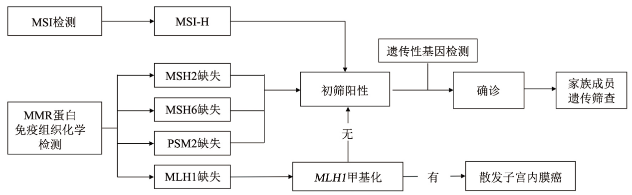 For dMMR patients, further germline mutation testing (blood or normal tissue DNA) is recommended for MLH1, MSH2, MSH6, PMS2, and EPCAM.